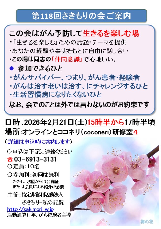 ●お申込み連絡先:電話 03-6913-3131 さきもりの会