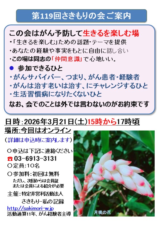 ●お申込み連絡先:電話 03-6913-3131 さきもり会